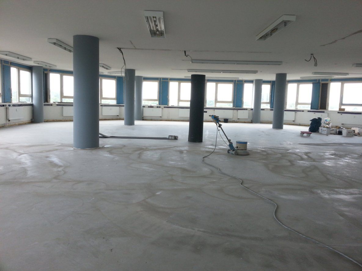 Eine Seite der Etage fertig. Ingesamt waren es 800 m² Fußbodenfläche. Zu der Etage gehörten noch Fensterarbeiten, Wände spachteln und Tapezieren.